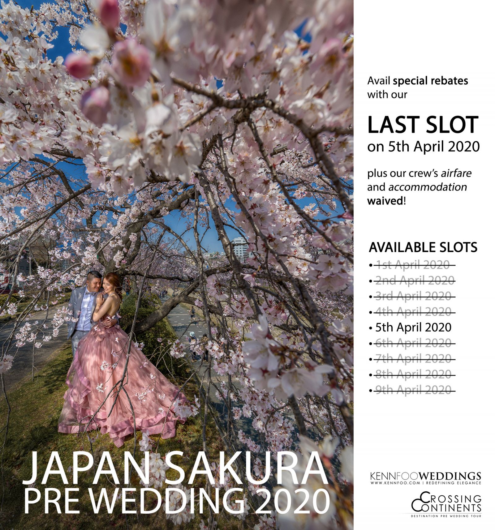 Congratulations! You had decided to make your pre wedding photos awesome by flying off to shoot at somewhere exotic! Every year, our destination expands as we explore more grounds (and seas plus mountains!) with our Couples around the world! Below you can find our Destination Pre Wedding schedule with list of available destinations for your Pre Wedding shoot. But if you don’t see your preferred destination or dates in our list, no worries! Just drop us a line and we will explore more options with you!