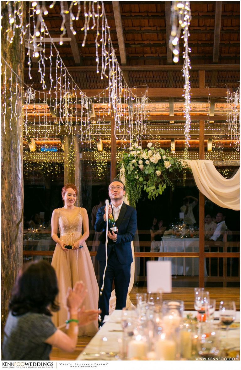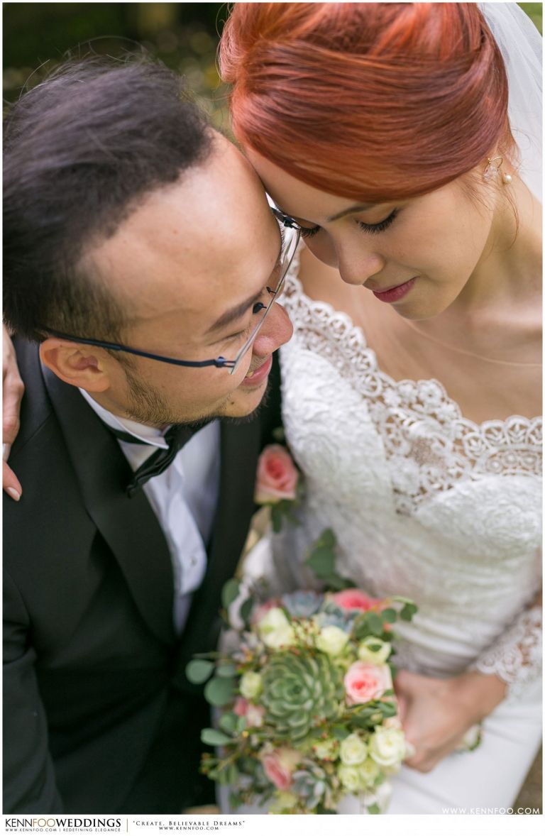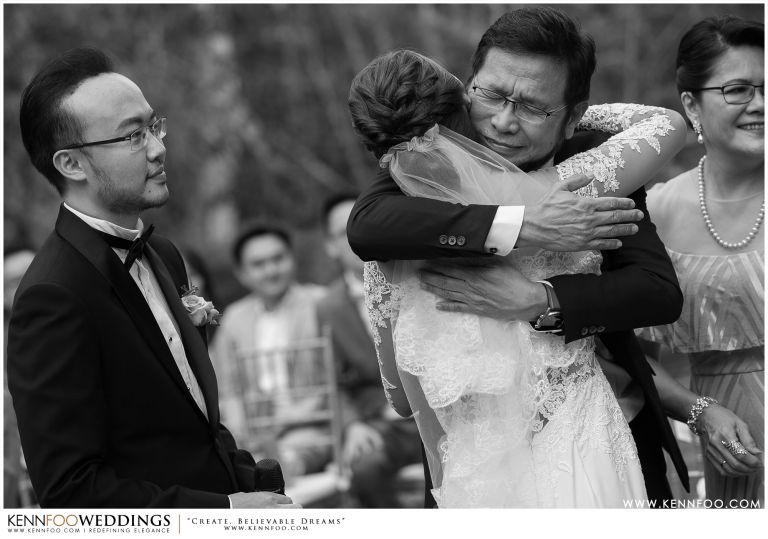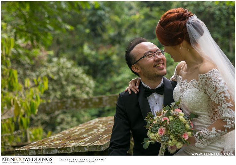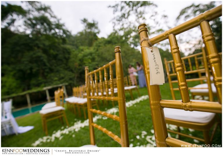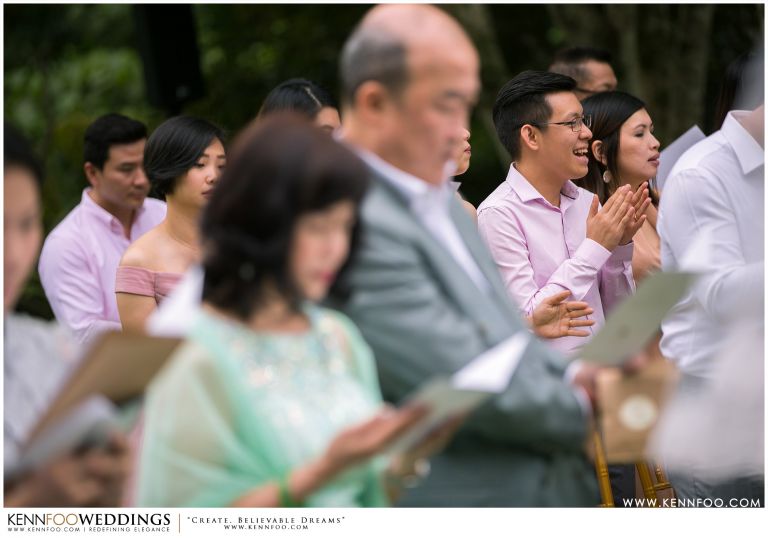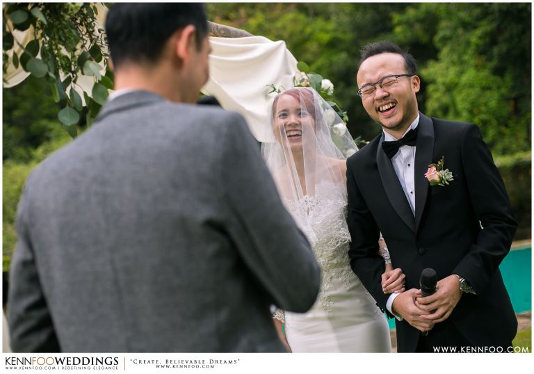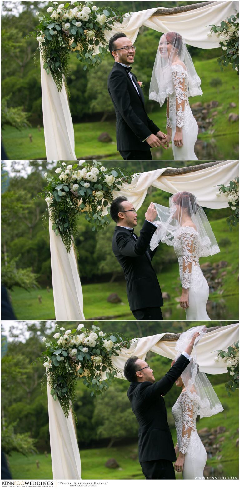 Enderong Resort is located in Pahang, say about an hour drive away from KL. It’s located at a higher elevation and offers lush nature all around the resort. On the wedding day itself, the sky was gloomy and it even drizzled a little before their vow exchange ceremony starts. Ryan, Priscilla and their families were worried, as their vow exchange was set to be at the middle of the open ‘park’ with beautiful view of the resort and a beautiful lake! Raining means they have to move everything inside the resort which will be a huge disappointment! Everyone prayed hard and God answered their prayers as the skies started to stop drizzling and the cloudy skies cleared off a little the moment their vow exchange starts. It was literally like witnessing a miracle!